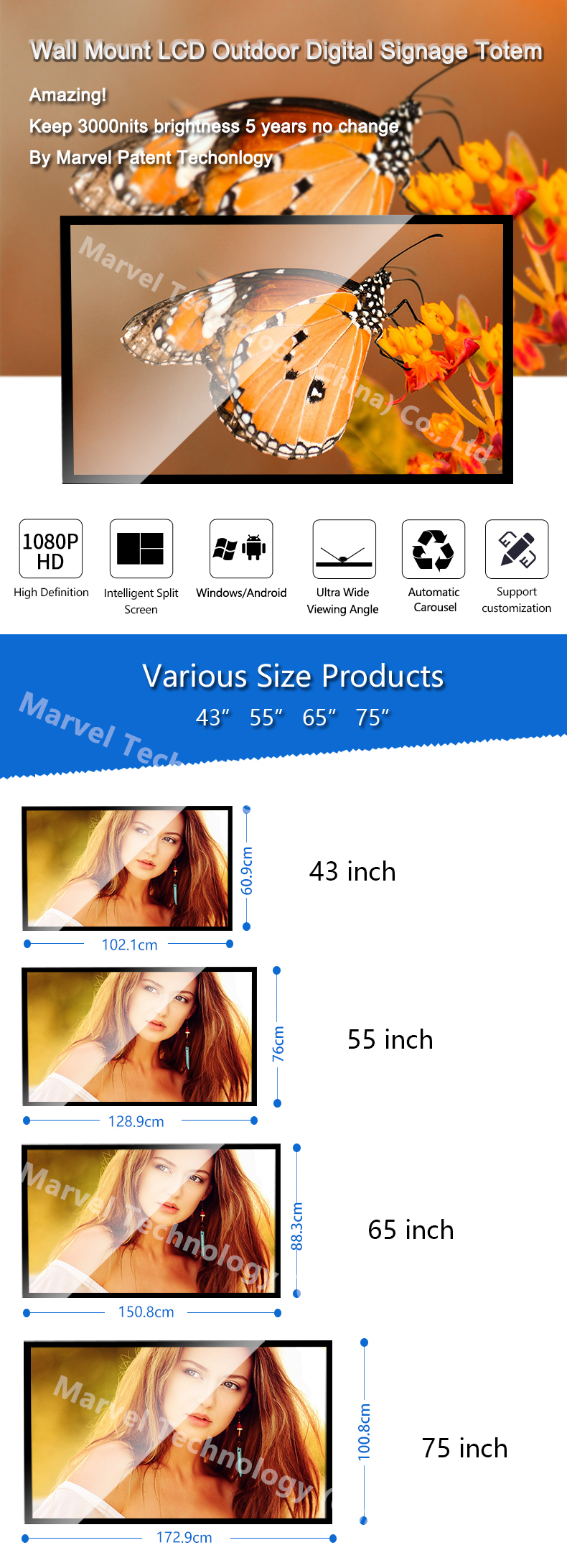 Our outdoor LCD displays are engineered to operate in temperatures from -25°C to 55°C with IP65/IP66 weatherproof rating. They feature reinforced enclosures, anti-corrosion coatings, and advanced thermal management systems to ensure reliable performance in rain, snow, dust, and extreme temperatures.